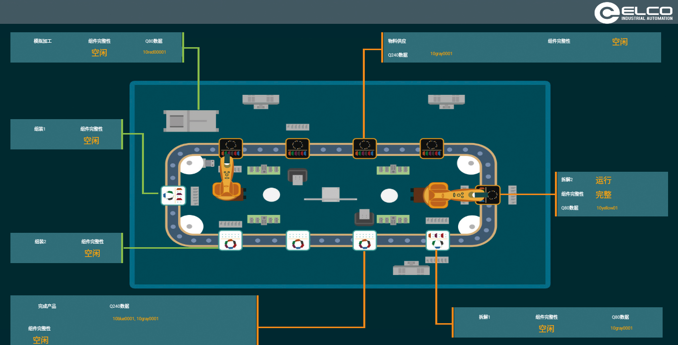 本实训中心取材于实际工业现场,系统包含MES系统、基础数据库、可视化设备,可实现高度集成的数据展示(如OEE、质量分析等)。