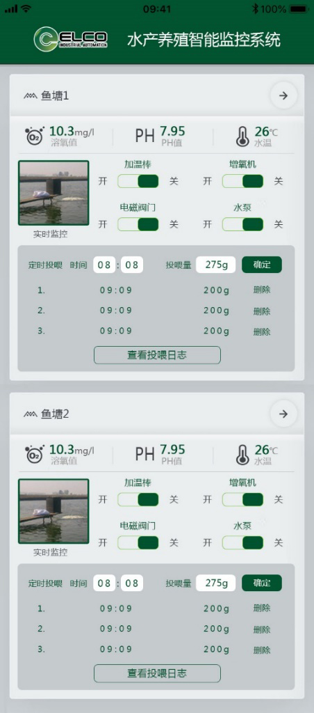 ■ 历史记录/报表: 可实时自动记录、储存设备开启时间,智能计算电费开支,投料量估算,并保存数据,帮助用户管理渔场。