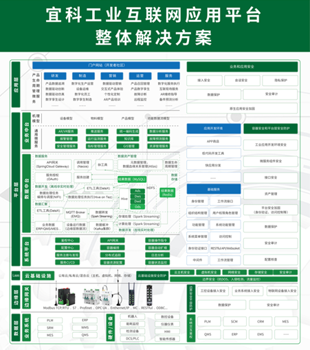 宜科数字化工厂解决方案 - 结合多年工业制造业的信息化集成业务积累,同时作为国内最在国内实践工业物联网、工业互联网的数字化解决方案提供商,宜科解决方案分析适配用户现有自动化和信息化基础,通过平台化能力建设,为用户建设工业互联网PaaS能力,实现统一综合运营管理平台(与企业集团平台不冲突),实现涵盖生产、运维、售后等多业务场景的平台化应用及配套软件系统集成交互能力建设,落实数据驱动的业务能力闭环。