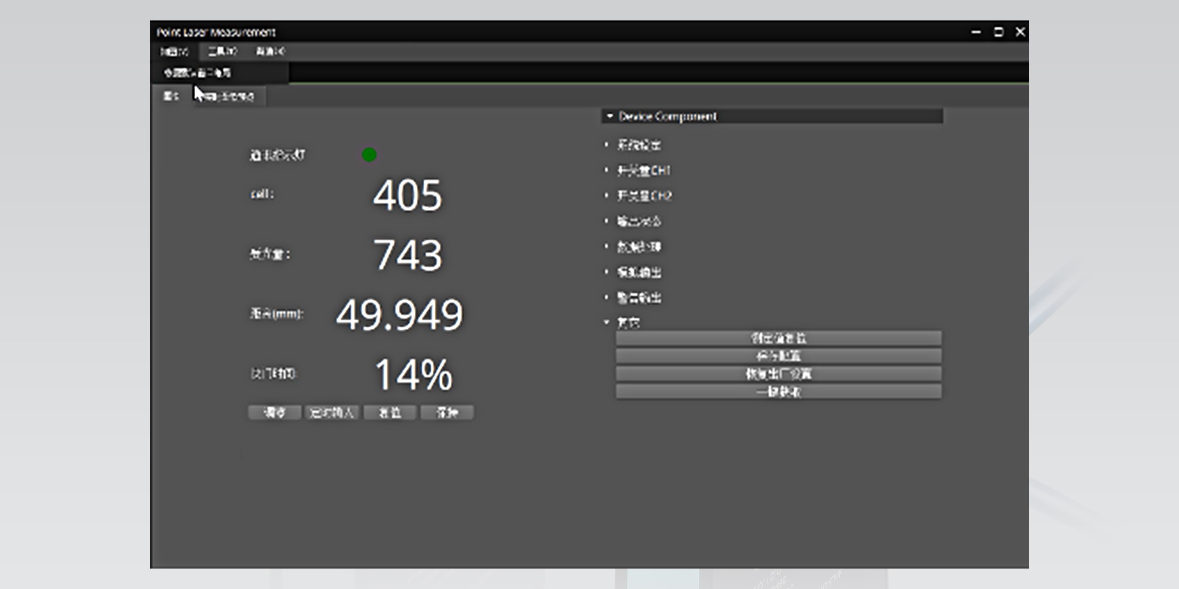 • 配套专业工具软件Point Laser Measurement,可同时连接15台传感器,提供直观、易用的操作界面,帮助用户轻松完成传感器的设定、数据采集、处理和分析等操作(下图所示)