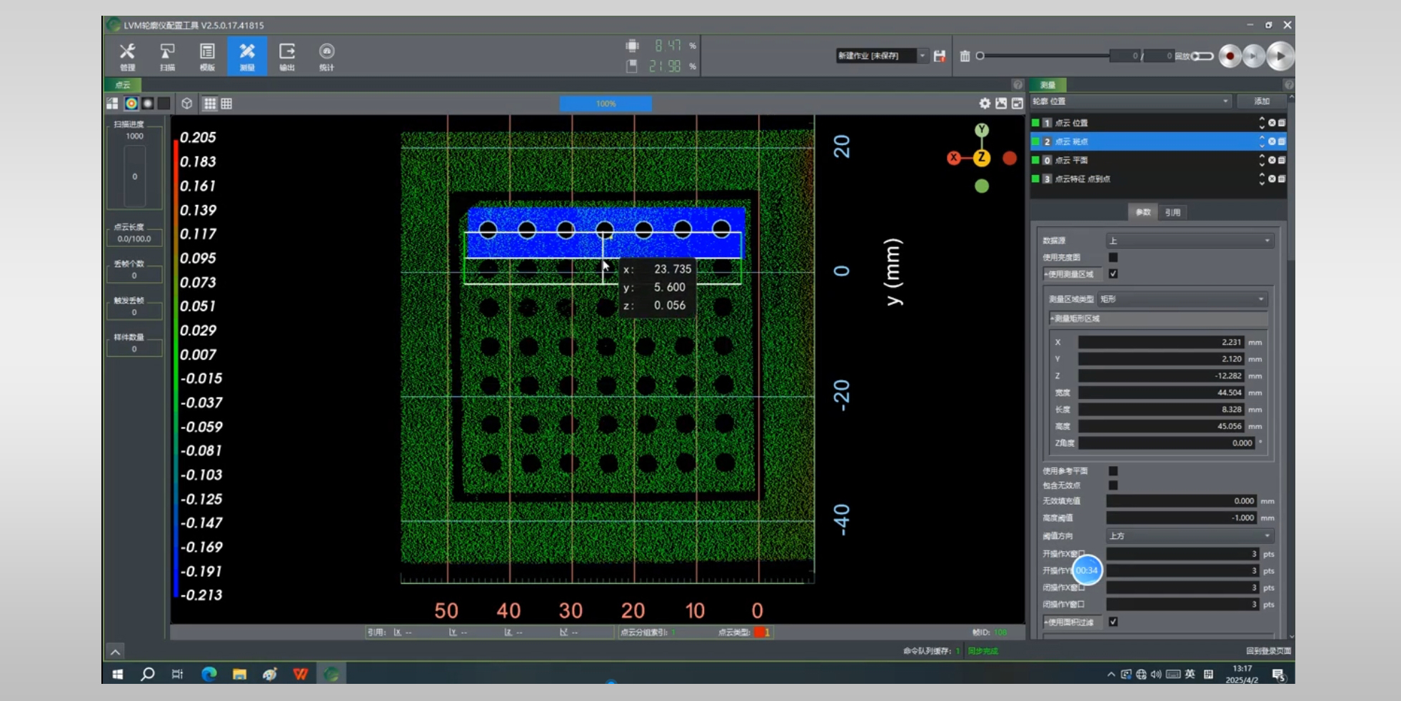 • 内置多维度轮廓点云分析工具,一键完成高度、宽度、角度等多参数测量。