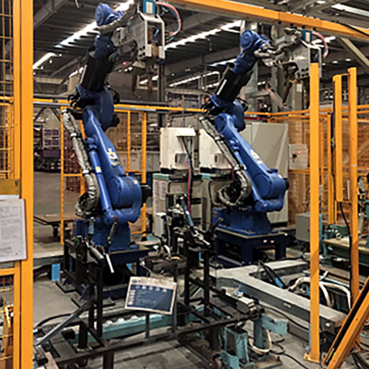 在生产车间机器人工作站为保障设备与操作人员安全,根据安全设计准则采用急停与安全继电器组合安全控制方案,当由于机器人工作站内在触发急停紧急停止时,此前采用SR22系列独立式安全继电器,需要使用多个独立式安全继电器逐一进行接线,需要花费大量线缆与人工接线时间,增加了项目整体调试运行时间。