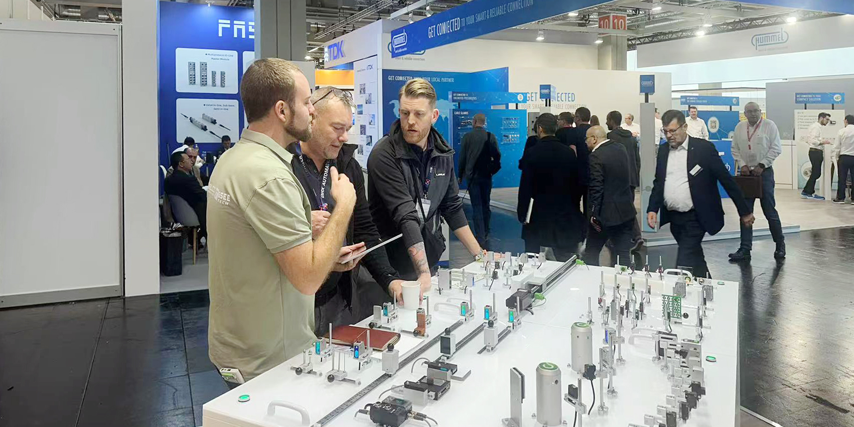 IO-Link展区此次展出主站+IP67从站+IP20+RFID整体解决方案,其中金属外壳主站、C40和Q95两款IO-Link高频读写头是首次亮相德国SPS展会,为欧洲自动化市场提供更具特色的IO-Link产品。