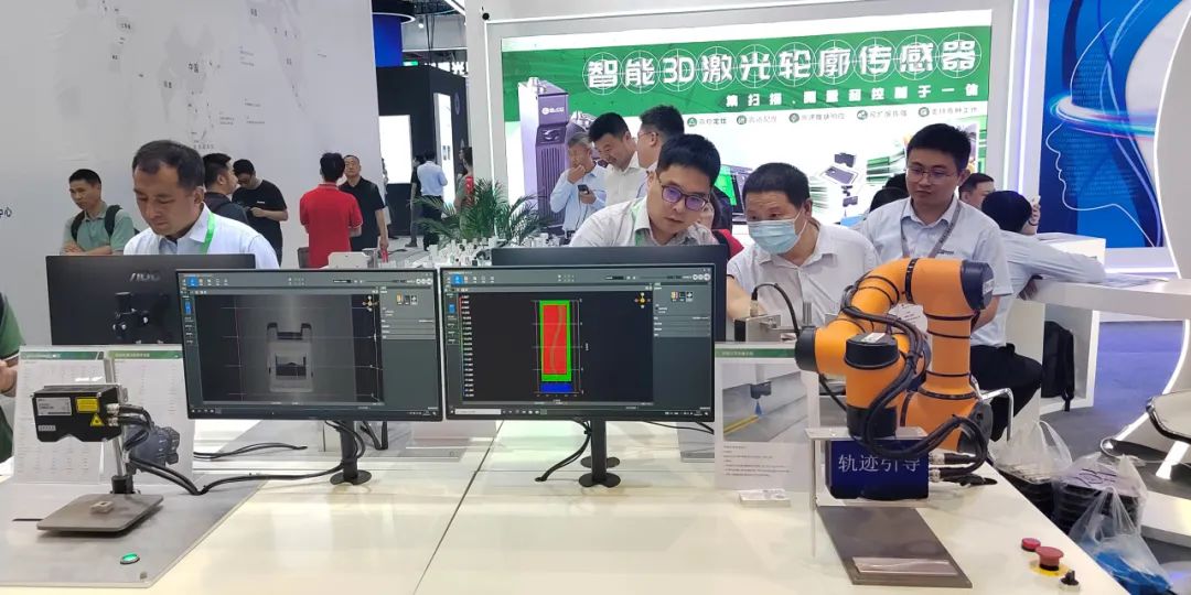 3D激光轮廓传感器动态展台前,聚集了众多观众驻足观看。在专业工程师的细致功能讲解下,结合行业检测应用展示,现场观众更加深入了解3D激光轮廓传感器如何对物体轮廓、尺寸等进行精确扫描和处理,即使微小瑕疵,也能精确检测。