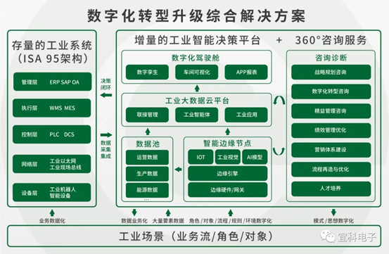 此次展会,宜科数字化工厂展区将通过众多成功案例,为用户展示企业数字化蓝图如何落地实施。通过为客户提供智能制造顶层设计,将数字化战略和企业愿景相结合,应用“工业互联网平台、IOT、5G、云计算、大数据、APP”等新技术,为企业量身定制数字化转型解决方案,帮助企业实现一站式数字化转型,解决企业生产现场情况无法及时掌控、缺乏操作层面数据的自动采集、缺少数据关联及数据共享平台等问题。