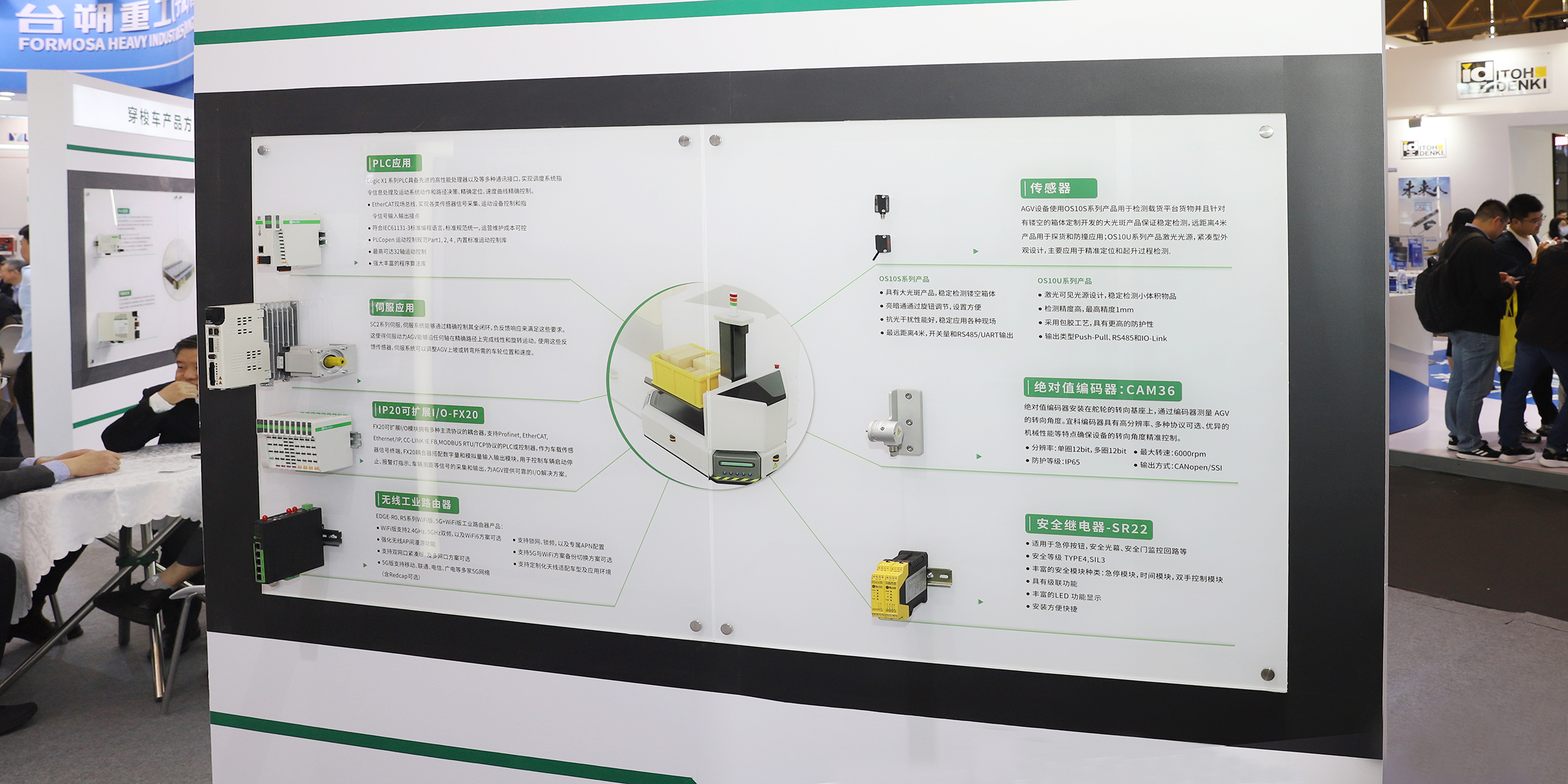 ●FX20可扩展I/O模块用于控制车辆启动停止、报警灯指示、车辆测距等信号的采集和输出,为AGV提供可靠的I/O解决方案。