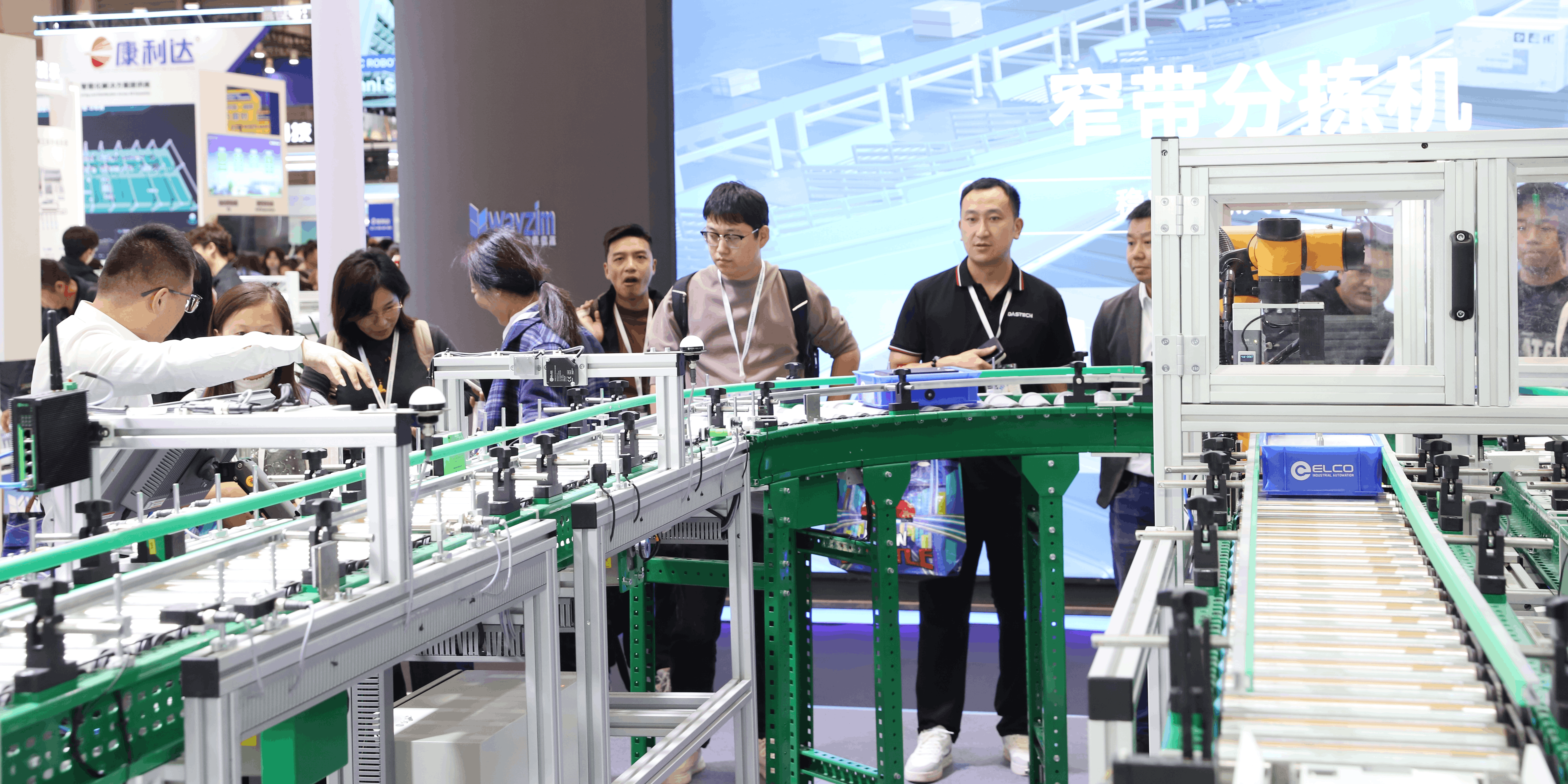 在宜科展台的核心区域,模拟真实作业场景的智能物流线正平稳运行,完整演示了从分拣到入库的全流程。其流畅运作生动体现了高度的精准性与协同性,充分彰显了产品的卓越性能。